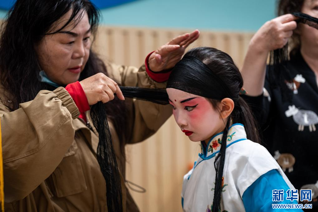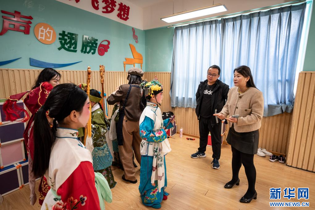 在云南省昆明市五華區文林小學,羅秀華老師在對少兒滇劇傳習班的小演員進行指導。