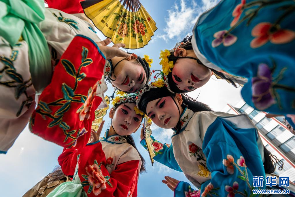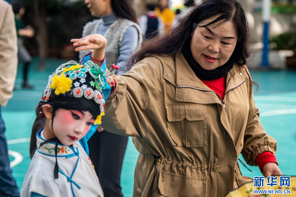新華網昆明11月15日電(胡超)畫好妝容、戴上珠釵、舞起水袖,咿咿呀呀唱開腔……在昆明市文林小學的校園內,一群稚氣未脫的孩子們像模像樣地唱起滇劇,一顰一笑,有模有樣?!拔覀兣啪毜墓澞拷小兜崆粦蝽嵨牧滞蕖?,孩子們十八號要在廣東珠海的教博會上表演?!钡釀髁暟嗬蠋熈_秀華介紹。