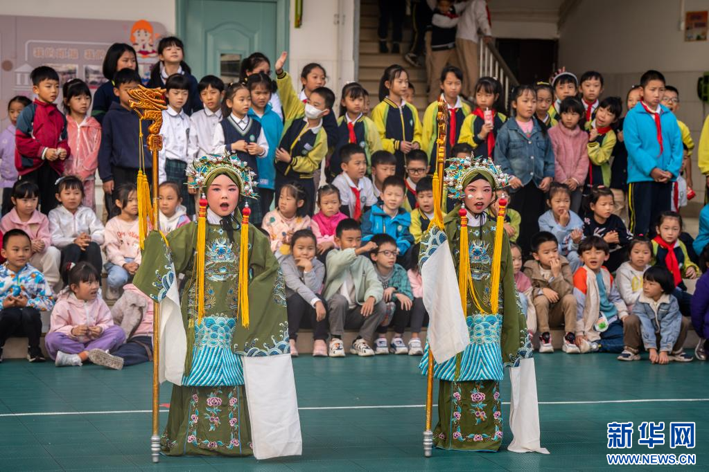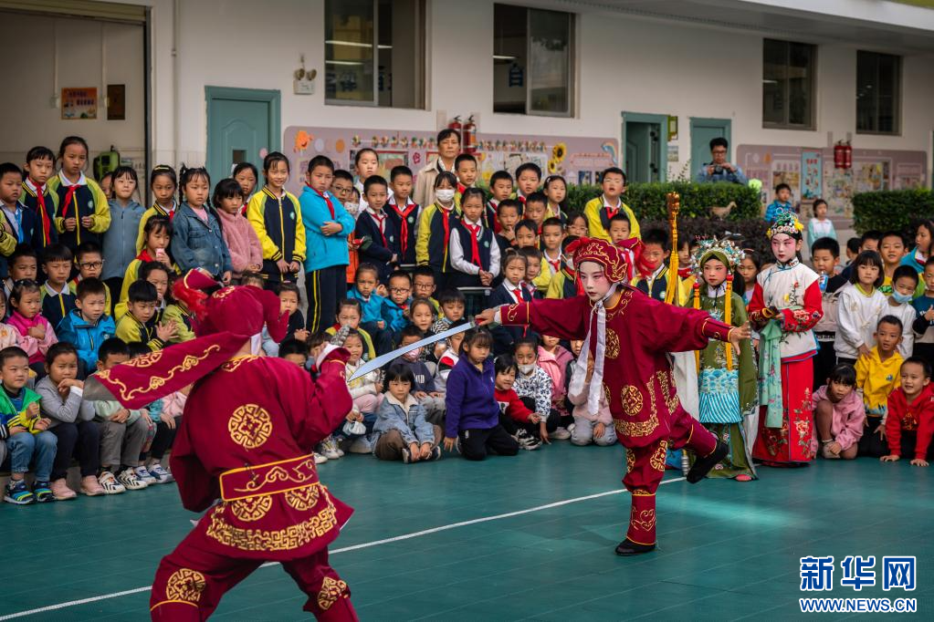 文林小學根據學生的年齡和學習特點實施分層教學,并設置了大中小三級課堂?!暗釀∵M校園,讓學生在歷史故事里了解中華民族的來龍去脈,在滇劇的學習中提升藝術鑒賞能力,增強聲樂、器樂學習的綜合能力?!绷_文華說,老師會帶領低段學生觀看滇劇表演,嘗試比劃戲曲動作。引導高段學生開展滇劇作品鑒賞,模仿唱腔教學。