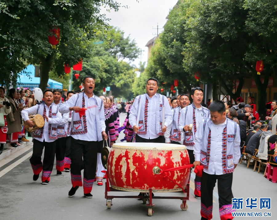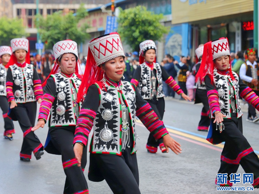 綠春縣各族群眾進行巡游展演(11月19日攝)。新華網發(楊亦麟 攝)
