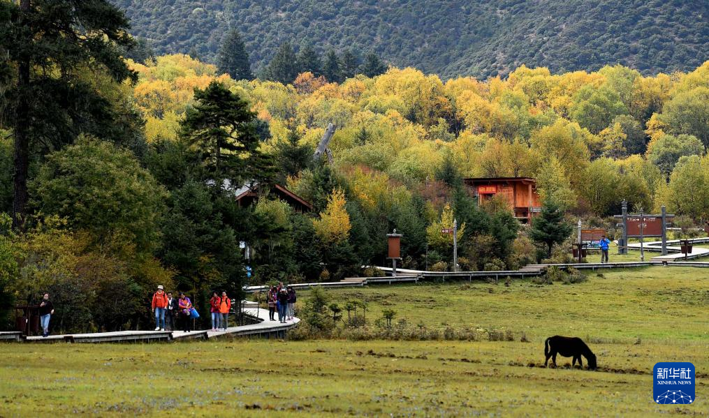 游人在云南迪慶州普達措景區里游覽。新華社記者 藺以光 攝