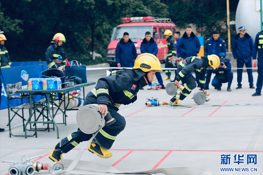 一人三盤水帶連接(11月17日攝)。新華網發(云南省消防救援總隊供圖)