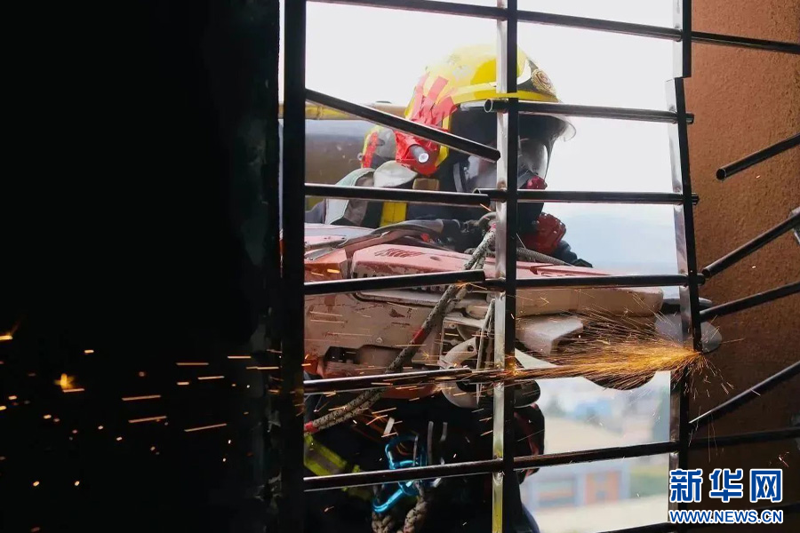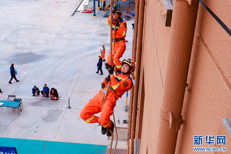 四樓繩索攀爬(11月17日攝)。新華網發(云南省消防救援總隊供圖)
