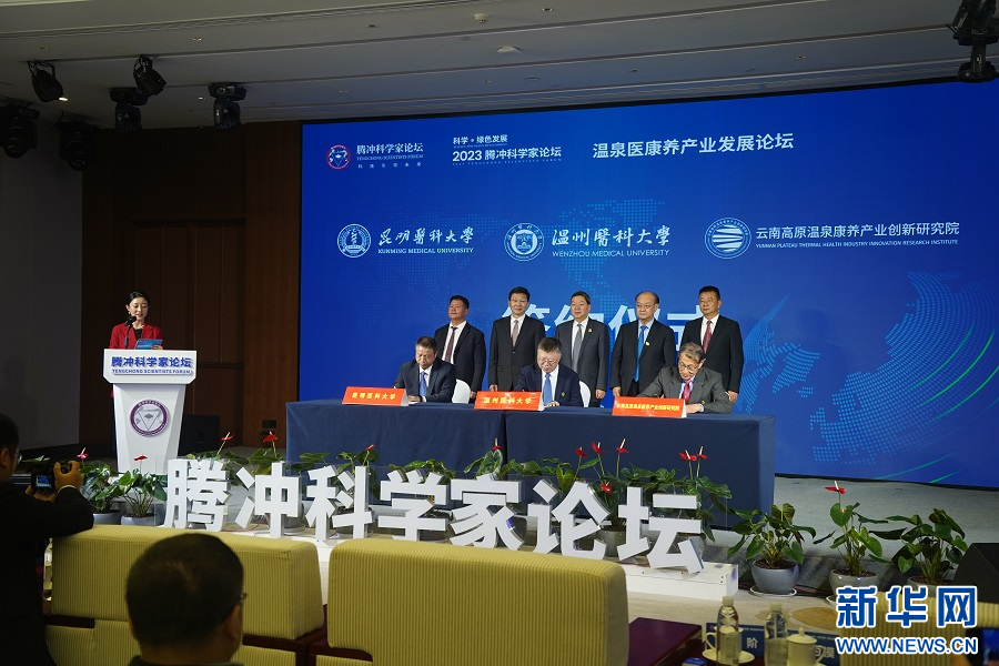 論壇舉辦期間,舉行了溫州醫科大學、昆明醫科大學與云南高原溫泉康養產業創新研究院戰略合作簽約儀式,“溫醫大—云溫院溫泉醫康養研究院”揭牌儀式,“溫州醫科大學溫泉康復人才實訓基地”授牌儀式,“昆明醫科大學溫泉康復人才實訓基地”授牌儀式,進行了溫泉研究成果發布等。