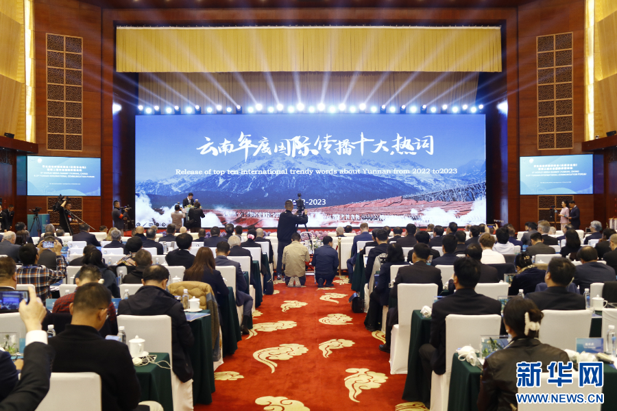 第五屆世界媒體峰會(云南分會場)暨第二屆大象國際傳播論壇上,新華網正式公布“云南2022—2023年度國際傳播熱詞”(12月5日攝)。新華網發(李浩 攝)