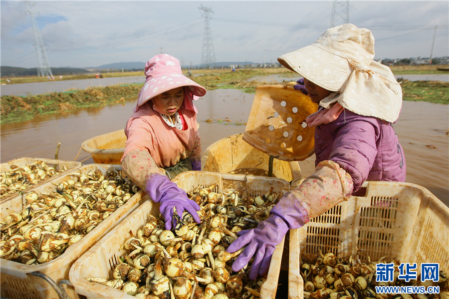 冬日里,云南省曲靖市沾益區盤江鎮小后所村的1000余畝茨菇迎來豐收,務工人員忙著采收供應省內外市場。近年來,沾益區盤江鎮積極調整農業產業結構,依托當地豐富的水資源、田地資源等優勢,緊盯市場需求,引進和培育優質農業和特色農業,大力發展茨菇、茭白、蓮藕等水生作物農業產業,走出一條農業提質增效、農民增產增收的新路子,為鄉村振興注入動能。新華網發(楊俊鵬 攝)