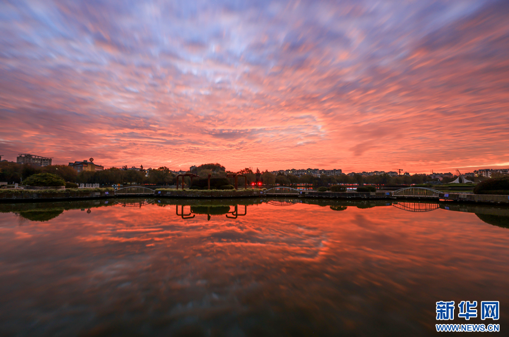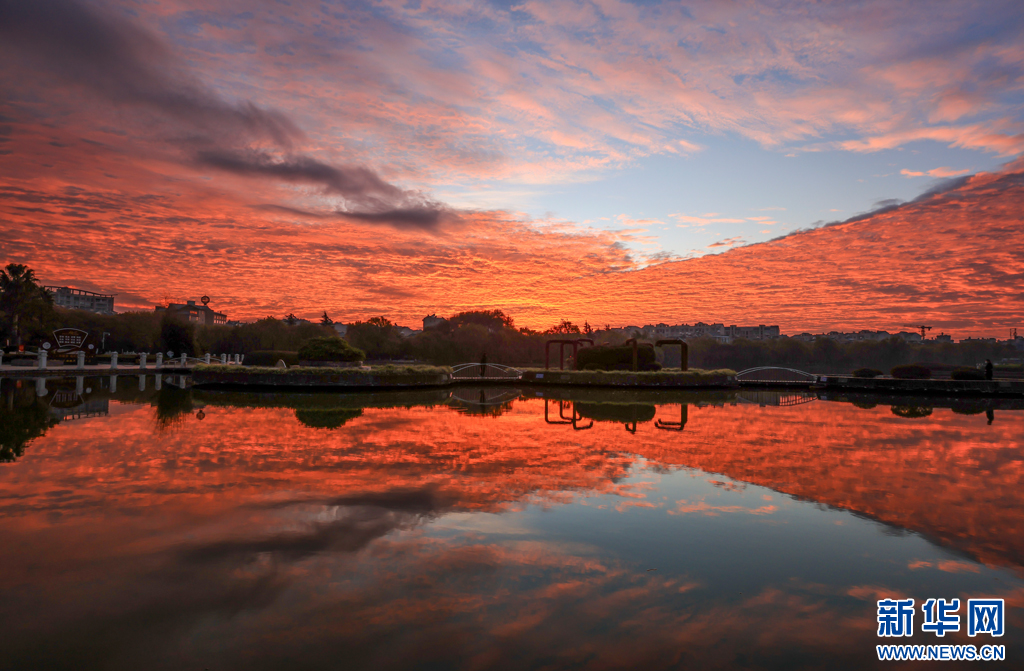 火紅朝霞鋪滿天(12月7日攝)。新華網發(孫文來 攝)