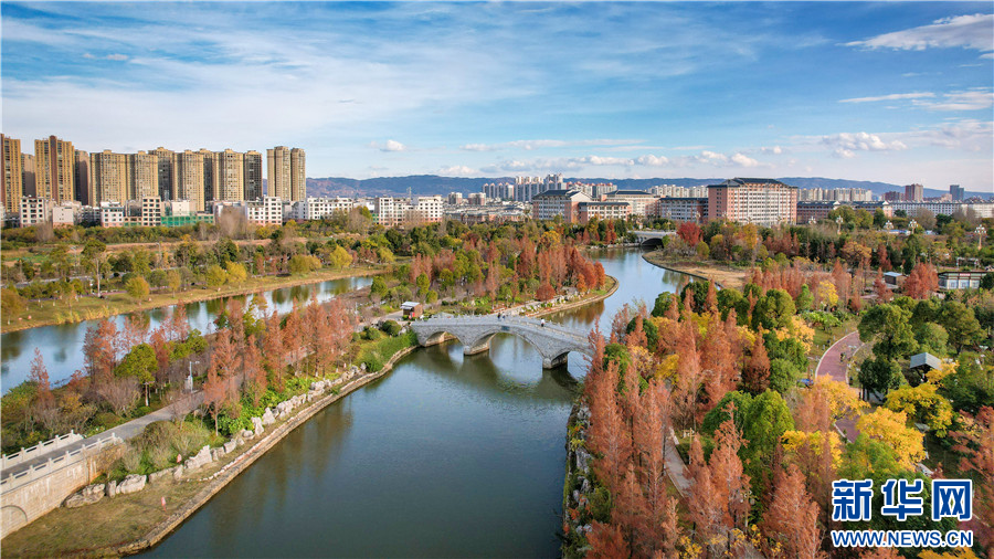 冬日里的曲靖市沾益區西河公園(12月3日攝)。新華網發(楊俊鵬 攝)