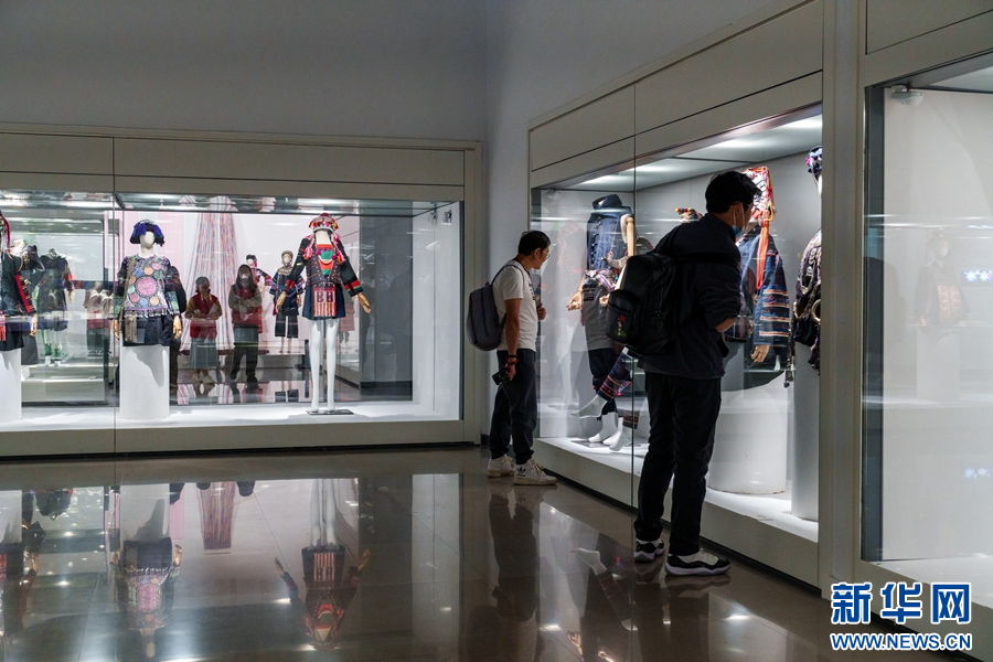 觀眾在《云歸和處——云南哈尼族服飾展》展廳內觀展(攝于12月9日)。
