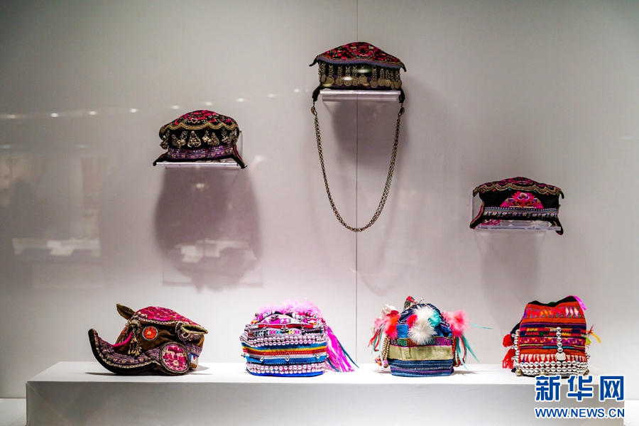 《云歸和處——云南哈尼族服飾展》展出的各類帽子(攝于12月9日)。
