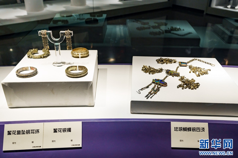 《云歸和處——云南哈尼族服飾展》展出的銀飾(攝于12月9日)。