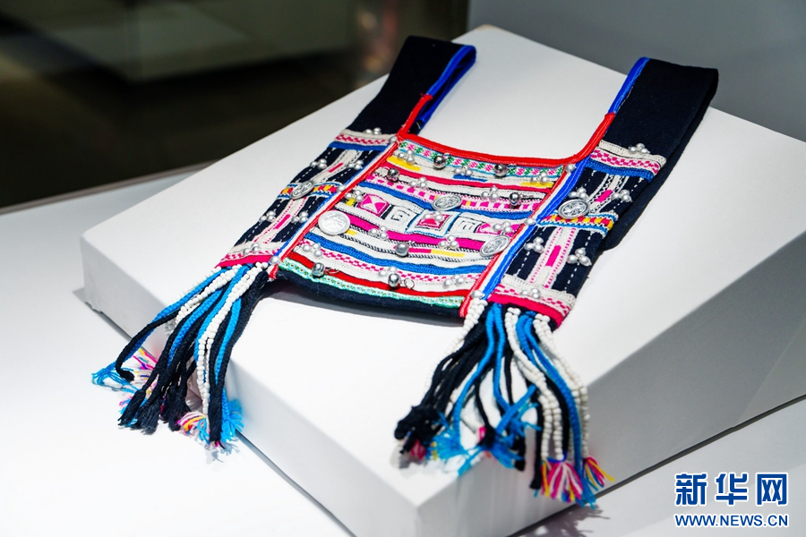 《云歸和處——云南哈尼族服飾展》展出的挎包(攝于12月9日)。