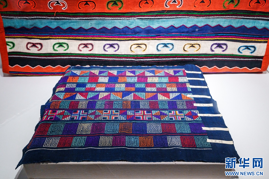 《云歸和處——云南哈尼族服飾展》展出的繡品(攝于12月9日)。