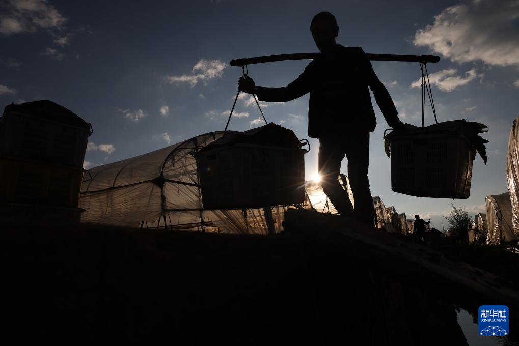 12月17日,在云南省昆明市呈貢區可樂村,村民在挑運蔬菜。