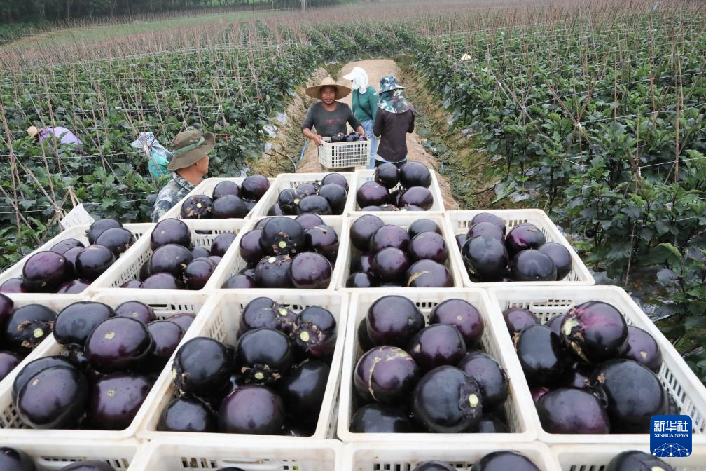 12月17日,工人在云南省景洪市勐罕鎮的一家種植基地采摘圓茄。