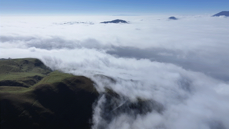 冬日,云南省昭通市永善縣馬楠山,云海層層疊疊,繚繞山巒草原,如詩如畫,宛若仙境。(甘光濤)