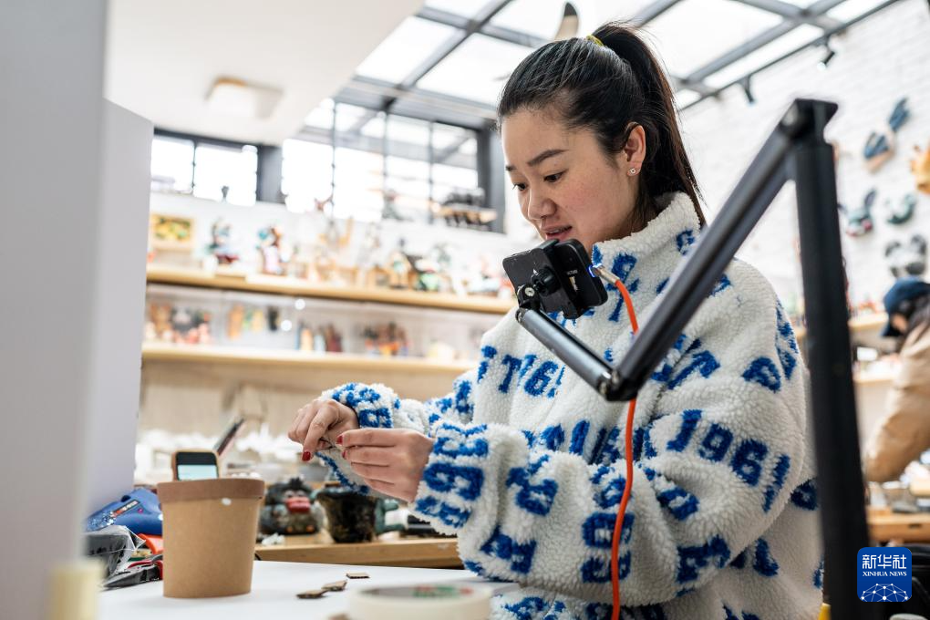 拾翠國際民藝園區,一家企業的員工在制作特色商品(12月20日攝)。新華社記者 肖瀟 攝