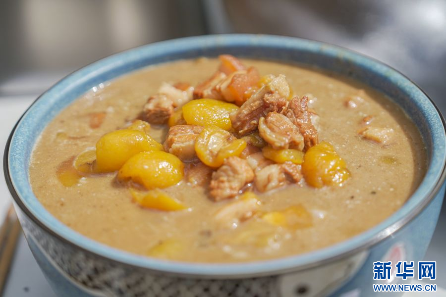 品嘗枇杷紅燒肉(11月15日攝)。新華網發(杜孟霓 攝)