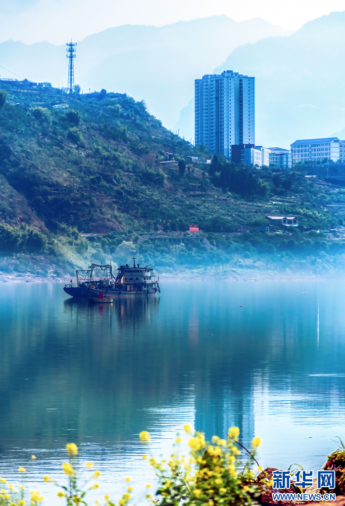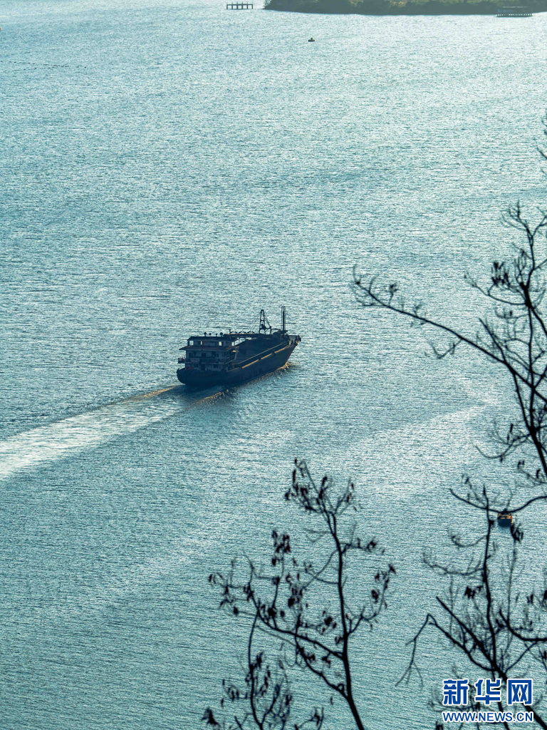 運砂船行駛在金沙江綏江段(12月5日 攝)。新華網發(曾三東 攝)