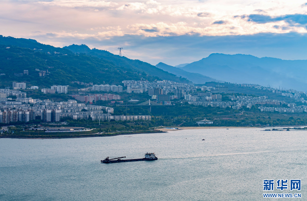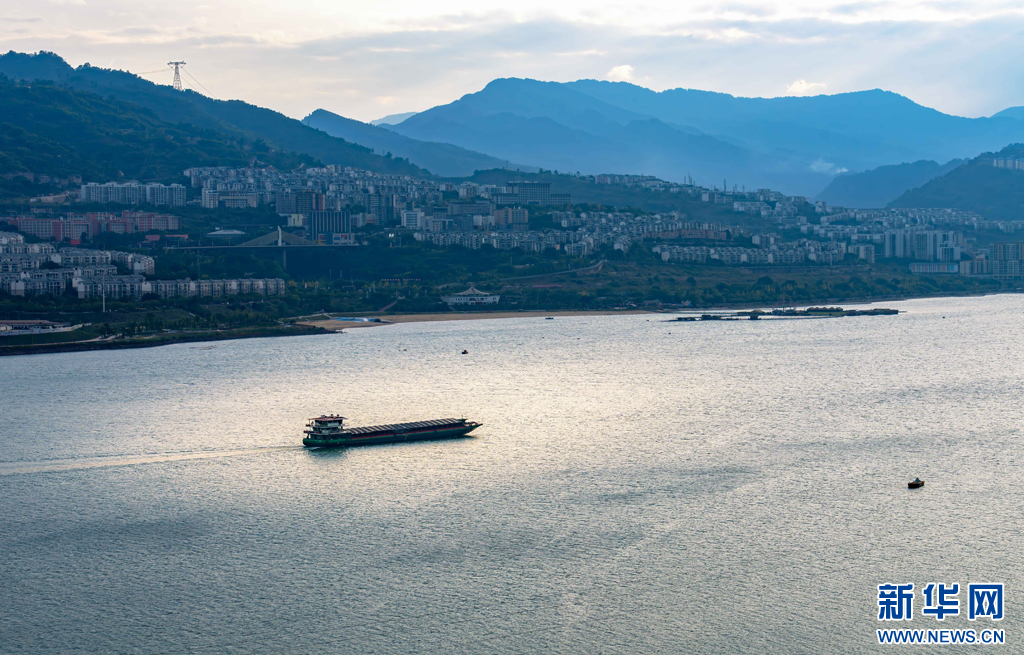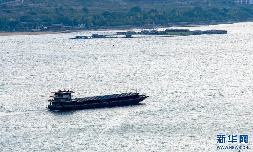 運砂船行駛在金沙江綏江段(10月20日攝)。新華網發(曾三東 攝)