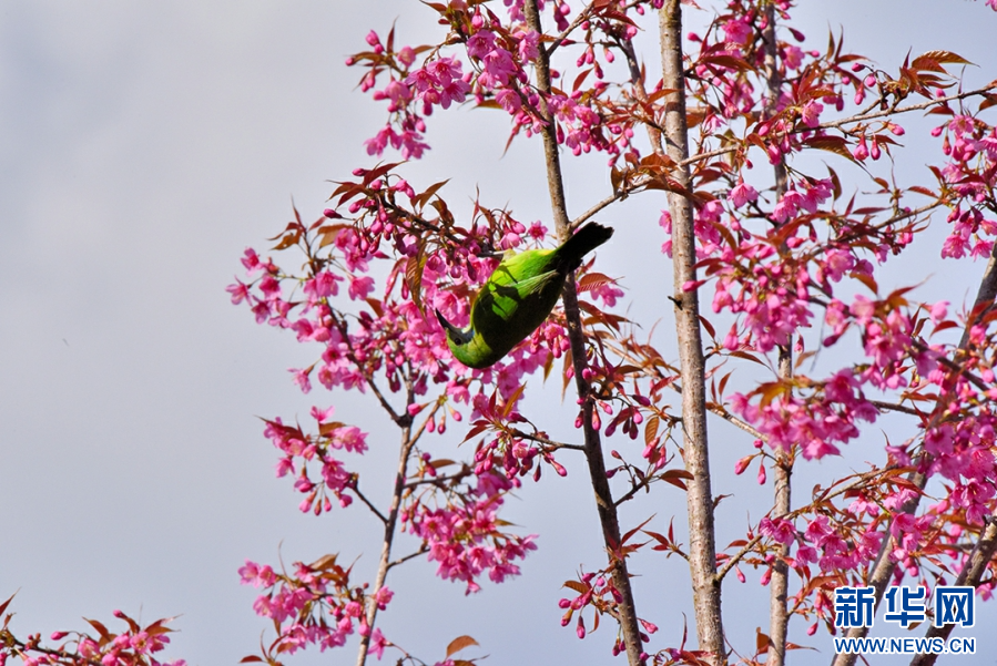 櫻花開處鳥歡樂(12月16日攝)。新華網發(吳再忠 攝)