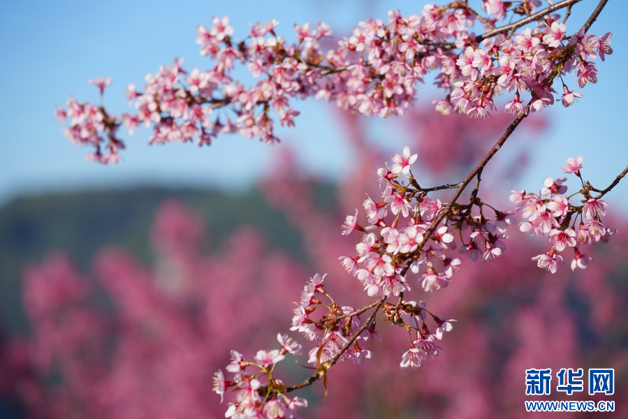 昌寧冬櫻花開滿枝頭(12月21日攝)。新華網發(昌寧縣融媒體中心供圖)