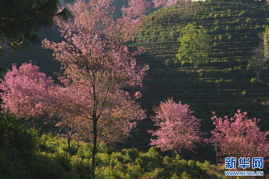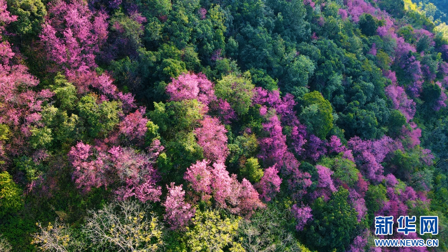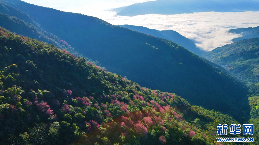 施甸縣善洲林場東麓十萬余株野櫻花如期綻放(12月18日攝)。新華網發(施甸縣融媒體中心供圖)