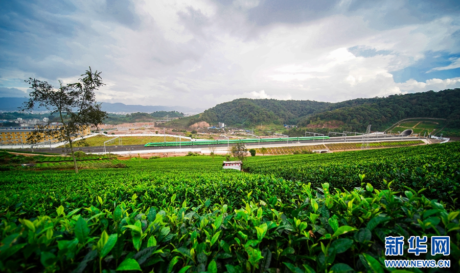 云南省普洱市思茅區,復興號動車與一片茶園“同框”(資料圖)。新華網發(楊林 攝)