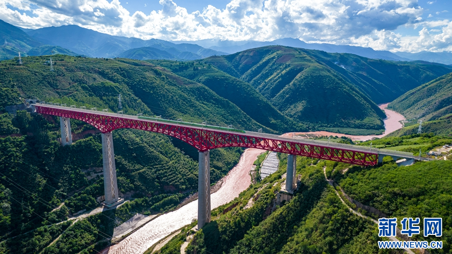 復興號動車行駛在麗香鐵路金沙江特大橋上,該座鐵路橋一頭連著麗江市玉龍縣,一頭連著迪慶州香格里拉市(資料圖)。新華網發(陳暢 攝)