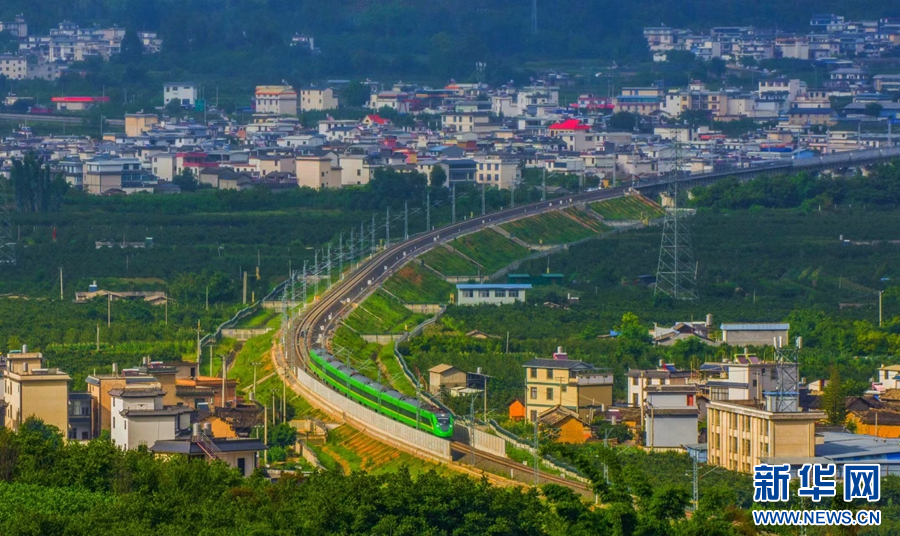 云南省保山市隆陽區,復興號動車穿行在城鄉之間(資料圖)。新華網發(汪金芳 攝)
