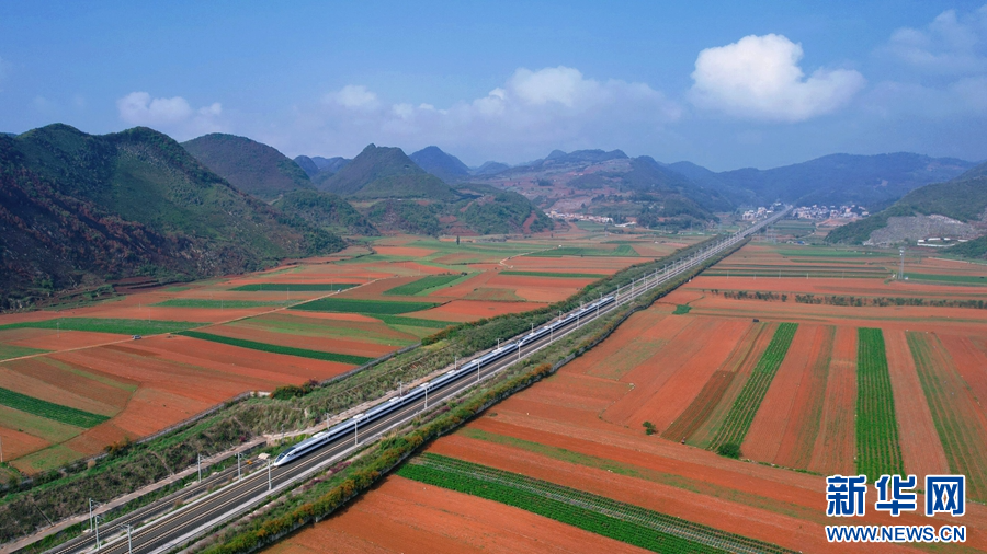 云南省文山州丘北縣,和諧號動車穿行在田野之中(資料圖)。新華網發(楊紫軒 攝)
