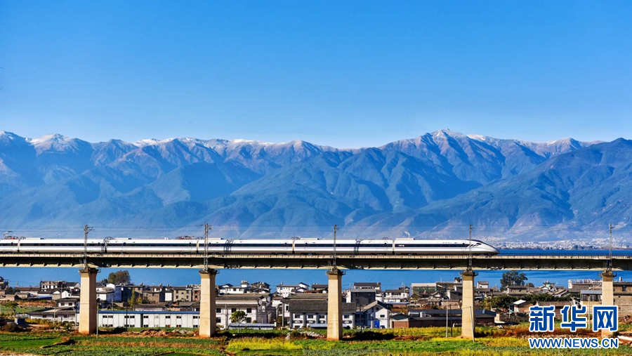 云南省大理州大理市,和諧號動車與洱?!巴颉保ㄙY料圖)。新華網發(徐章位 攝)