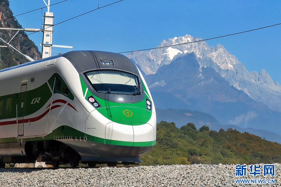 云南省麗江市玉龍縣,復興號動車與玉龍雪山“同框”(資料圖)。新華網發(李新 攝)