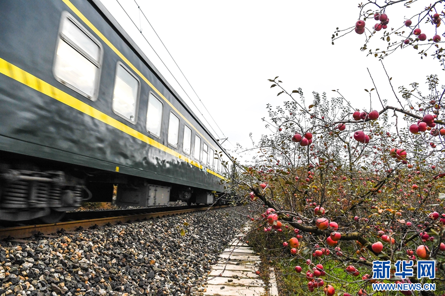 云南省昭通市昭陽區,一列綠皮火車從小龍洞村的蘋果園旁駛過。貴州貴陽至云南昭通之間的綠皮“慢火車”,是沿線村民出行的重要交通工具,也是沿線農產品出山的“致富快車”,而列車上最常見的農產品,就是昭通地區盛產的蘋果,因此這趟列車又被沿線村民親切地稱為“蘋果列車”(資料圖)。新華社記者 楊文斌 攝