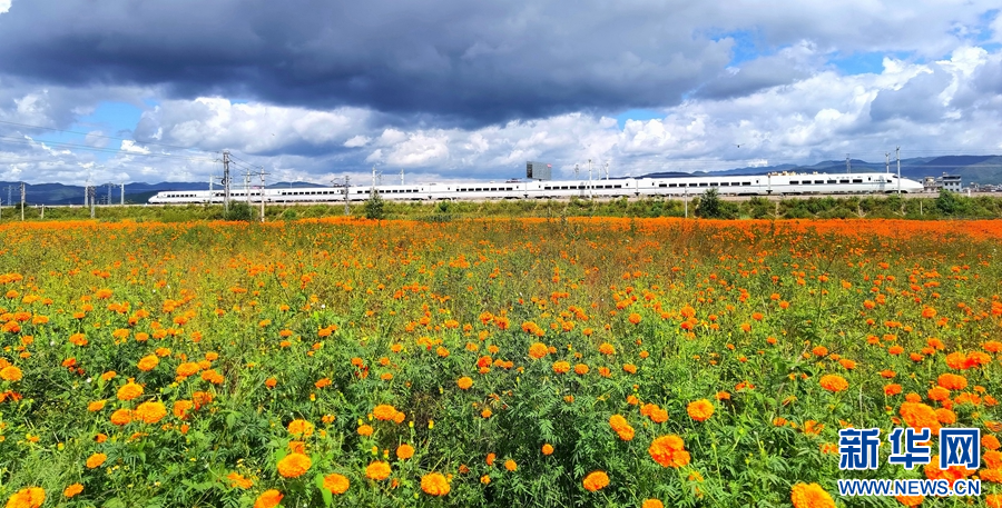 云南省臨滄市云縣,和諧號動車與一片花?!巴颉保ㄙY料圖)。新華網發(萬紹平 攝)