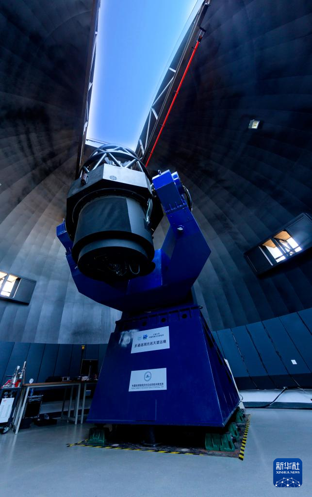 圖為位于中國科學院云南天文臺麗江天文觀測站內的夢飛巡天望遠鏡。(云南大學供圖)