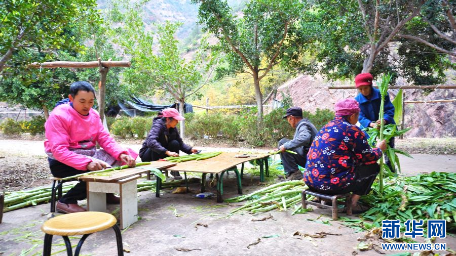 村民們忙著削皮(12月12日攝)。新華網發(永仁縣融媒體中心供圖)