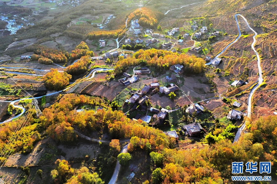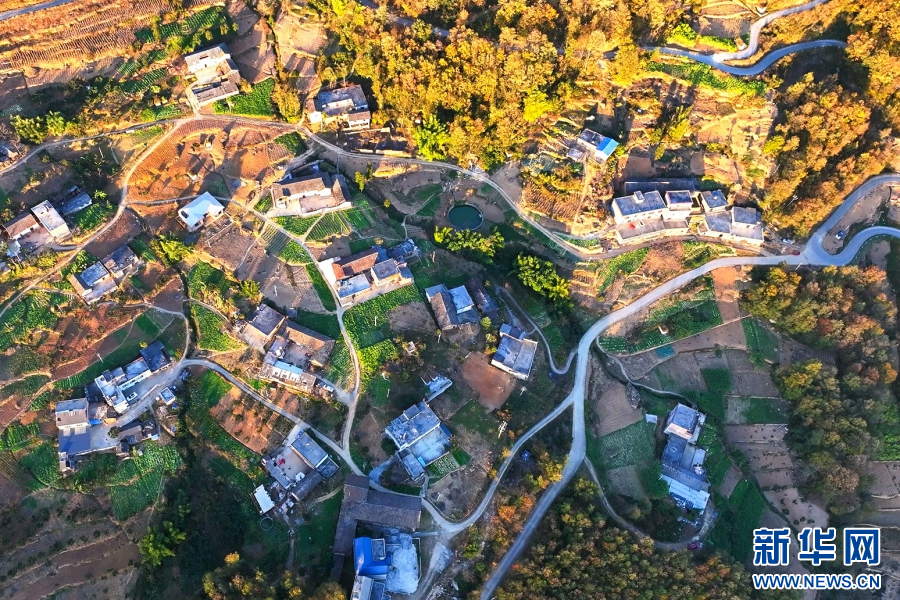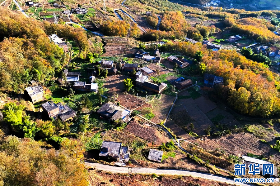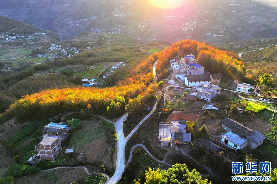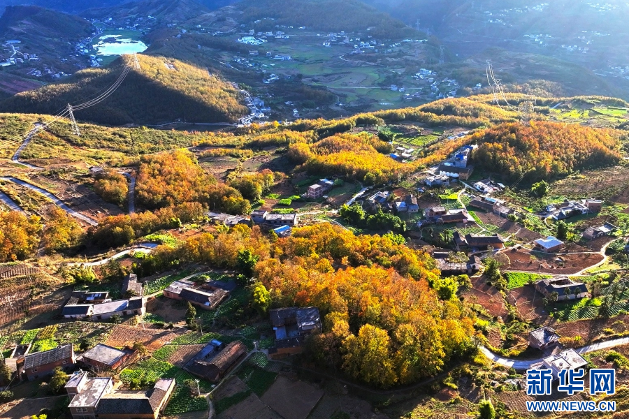 冬日暖陽下的村落一片金黃(12月27日攝)。新華網發(大關縣委宣傳部供圖)