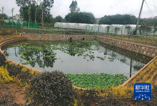 云南省嵩明縣楊林鎮龍保社區河道治理的氧化塘一景。(嵩明縣委宣傳部供圖)