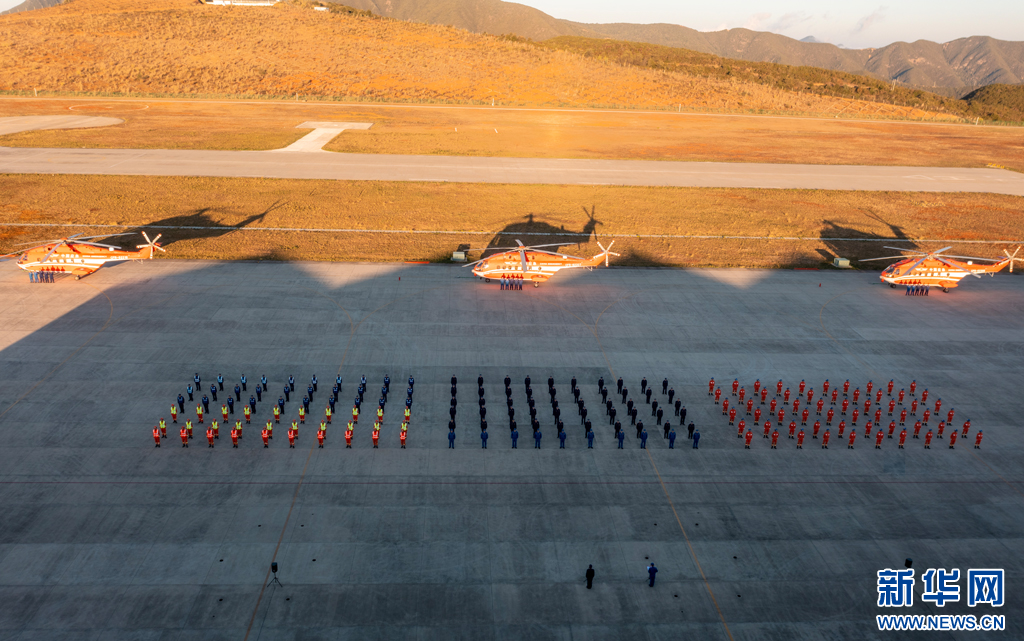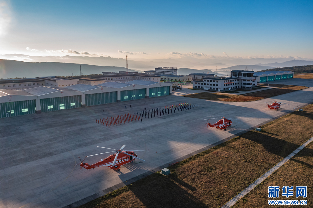 首飛儀式現場(1月4日攝)。新華網發(昆明航空救援支隊供圖)