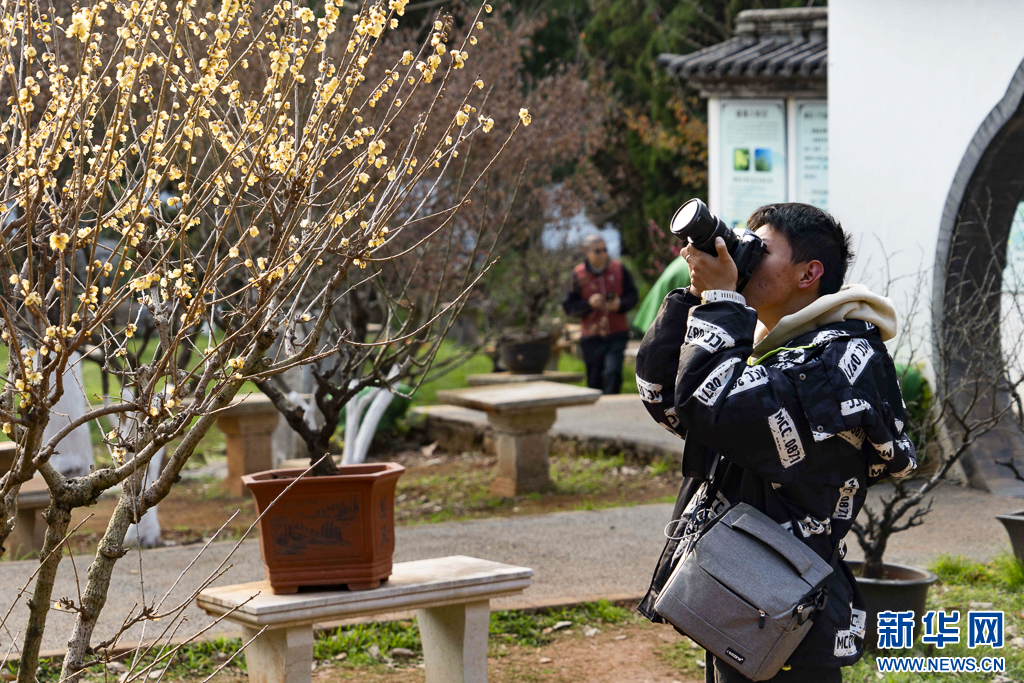 近日,在春城昆明的街頭,梅花和山茶花并舉爛漫景色,使得游客紛紛駐足觀賞與拍照分享。