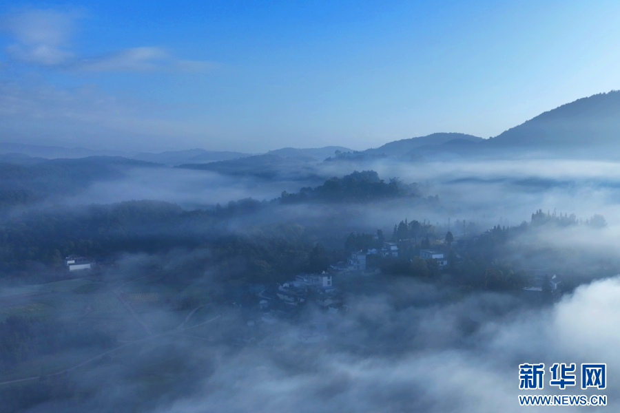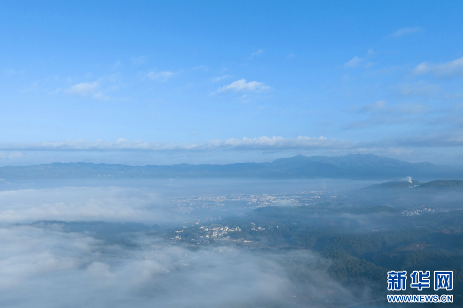 村莊上空云霧繚繞(1月16日攝)。新華網發(昌寧縣融媒體中心供圖)