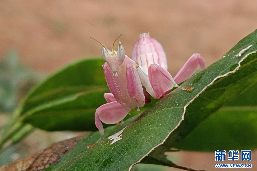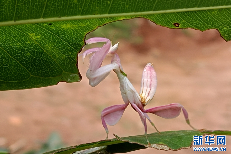 圖為在寧洱縣黎明鄉發現的蘭花螳螂(1月15日攝)。新華網發(楊瑛釧 攝)