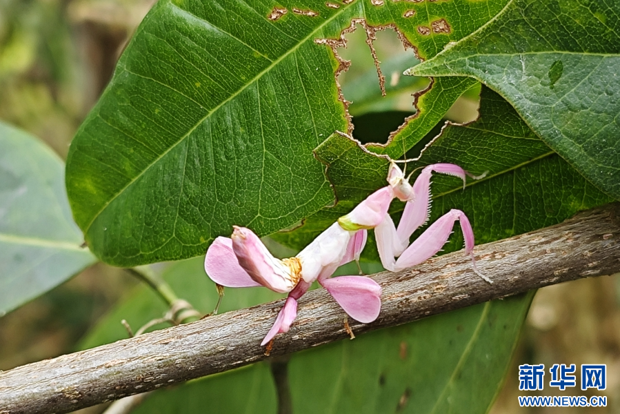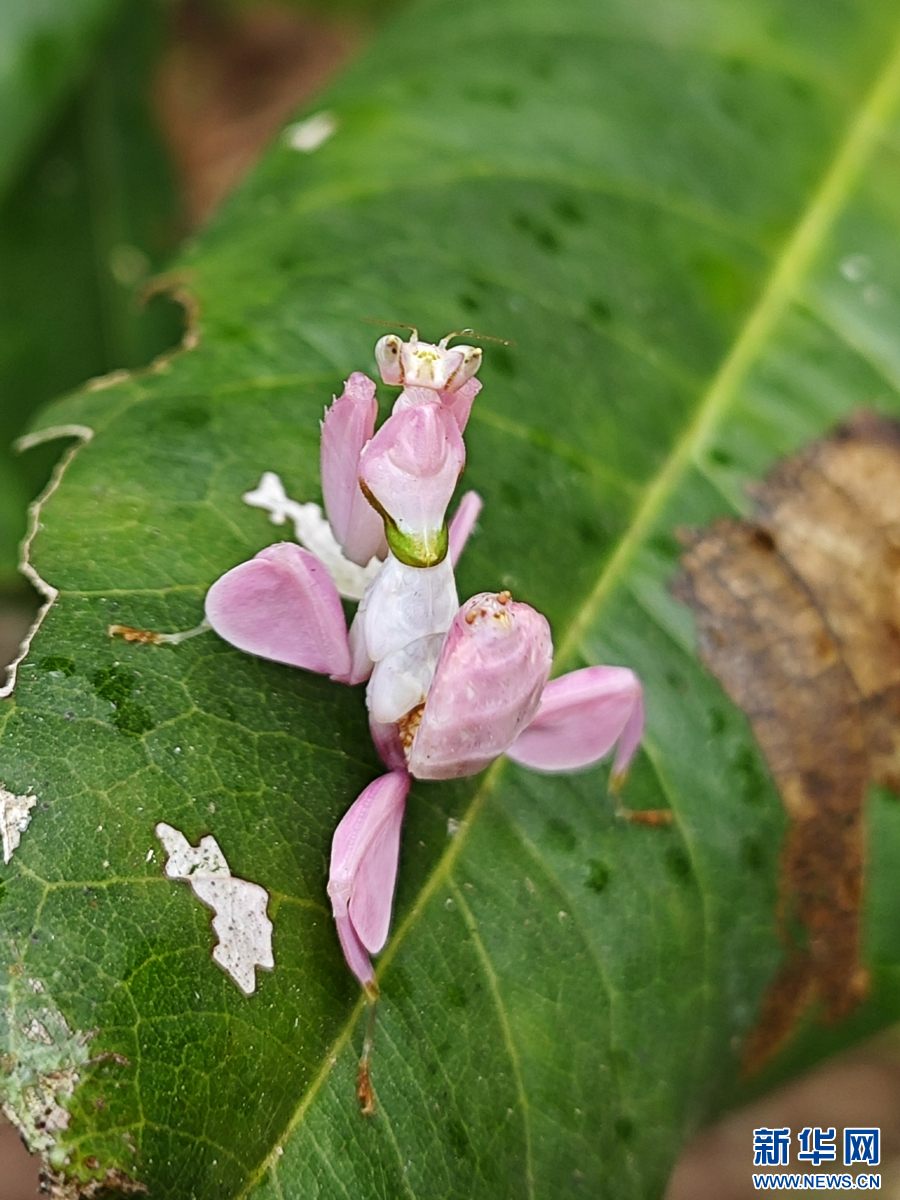 圖為在寧洱縣黎明鄉發現的蘭花螳螂(1月15日攝)。新華網發(張興科 攝)