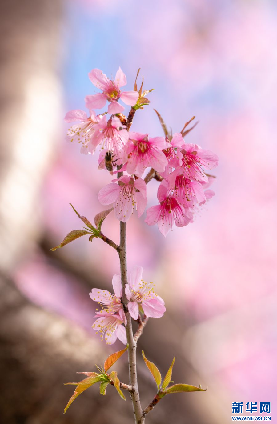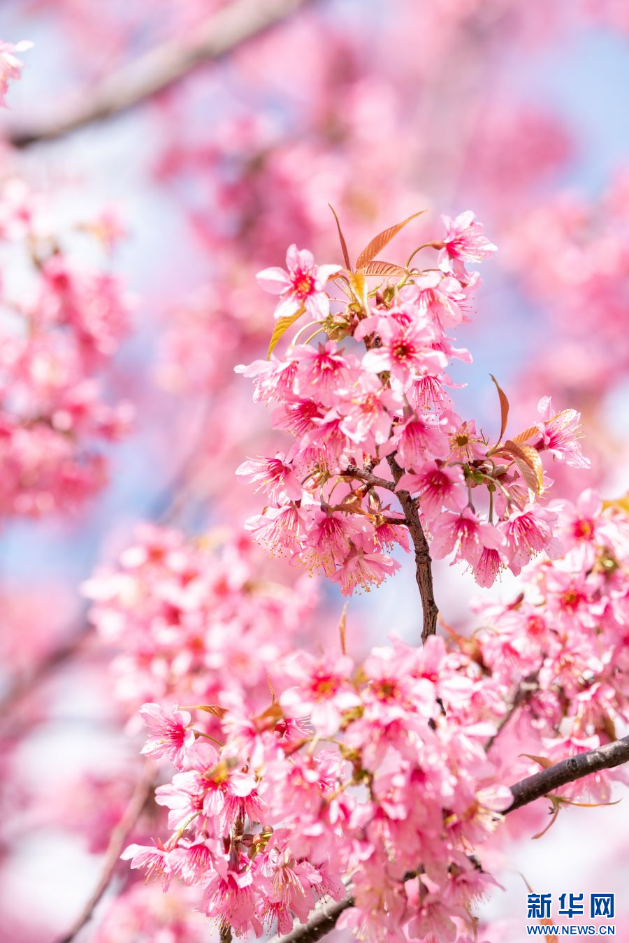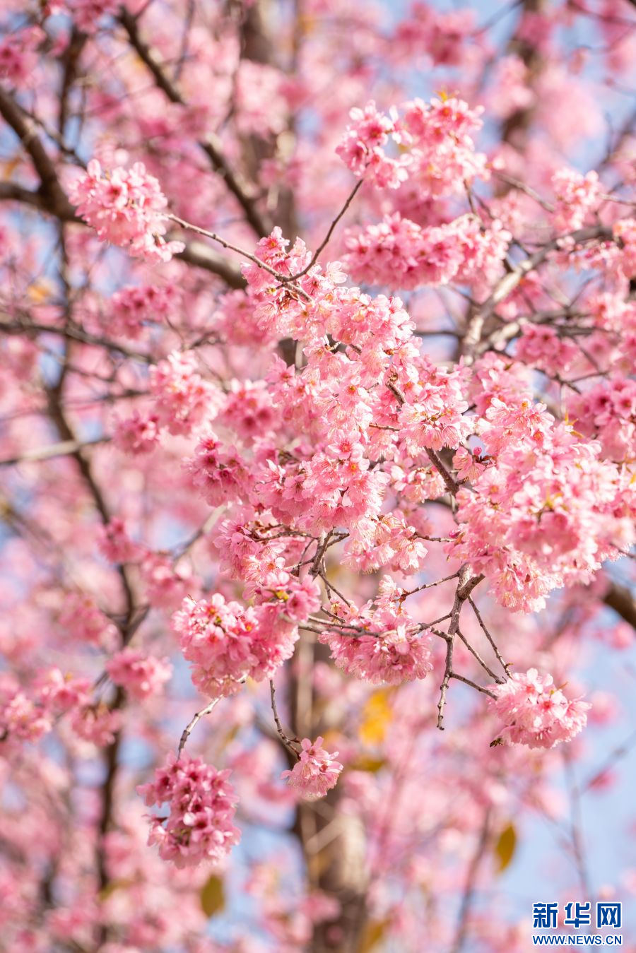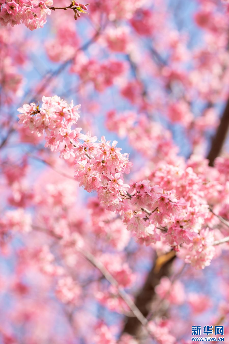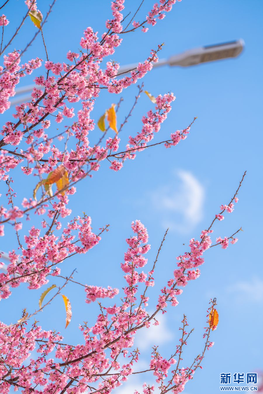 在云南省紅河哈尼族彝族自治州蒙自市,冬日暖陽下,櫻花盛開,與碧藍的天空交相輝映,美不勝收。(馬秋菊 李星 楊子傲 佘卓瑾)