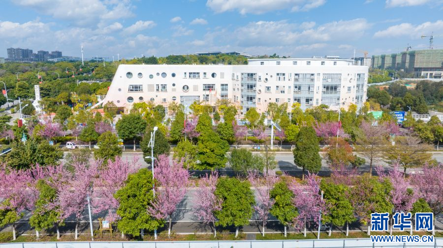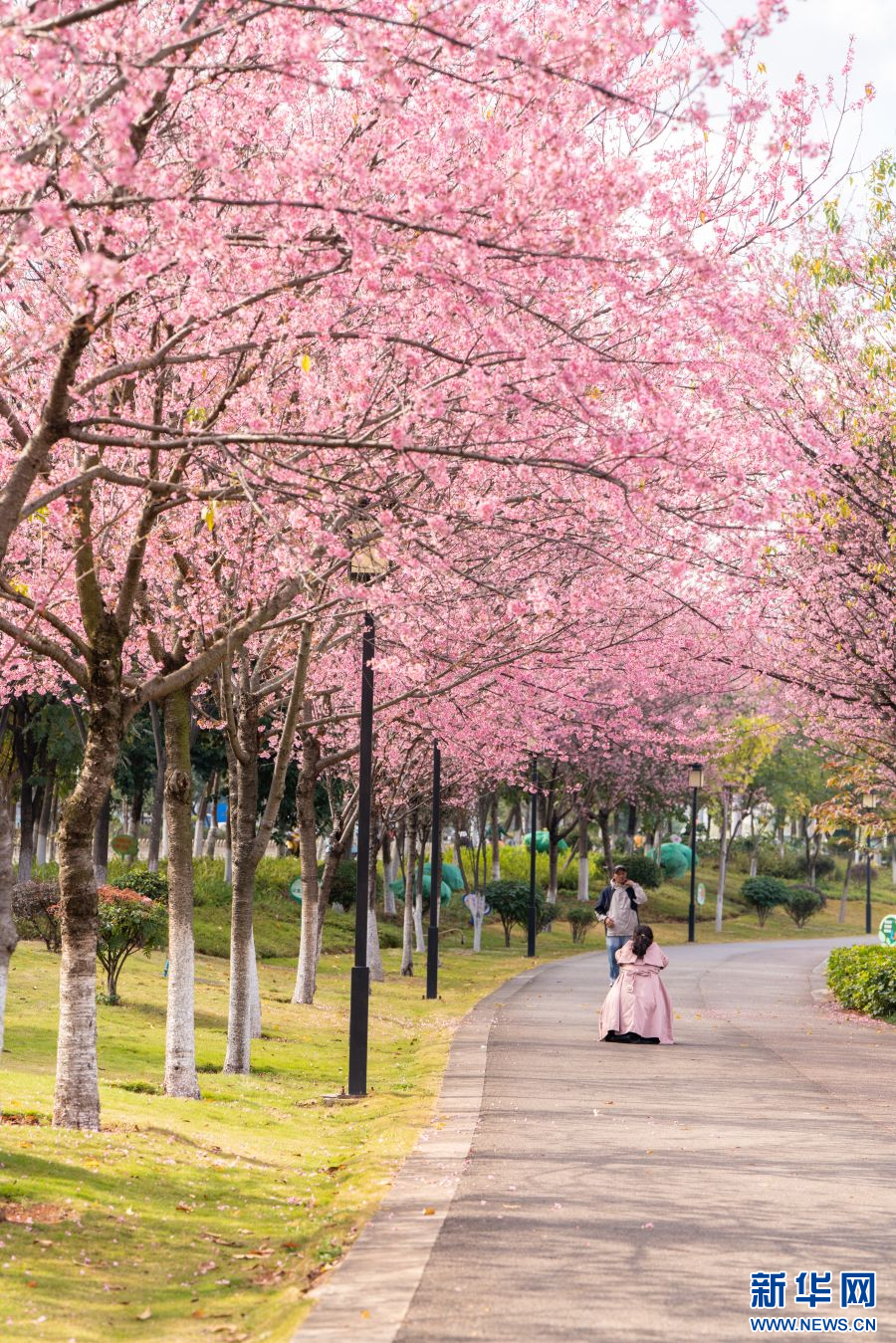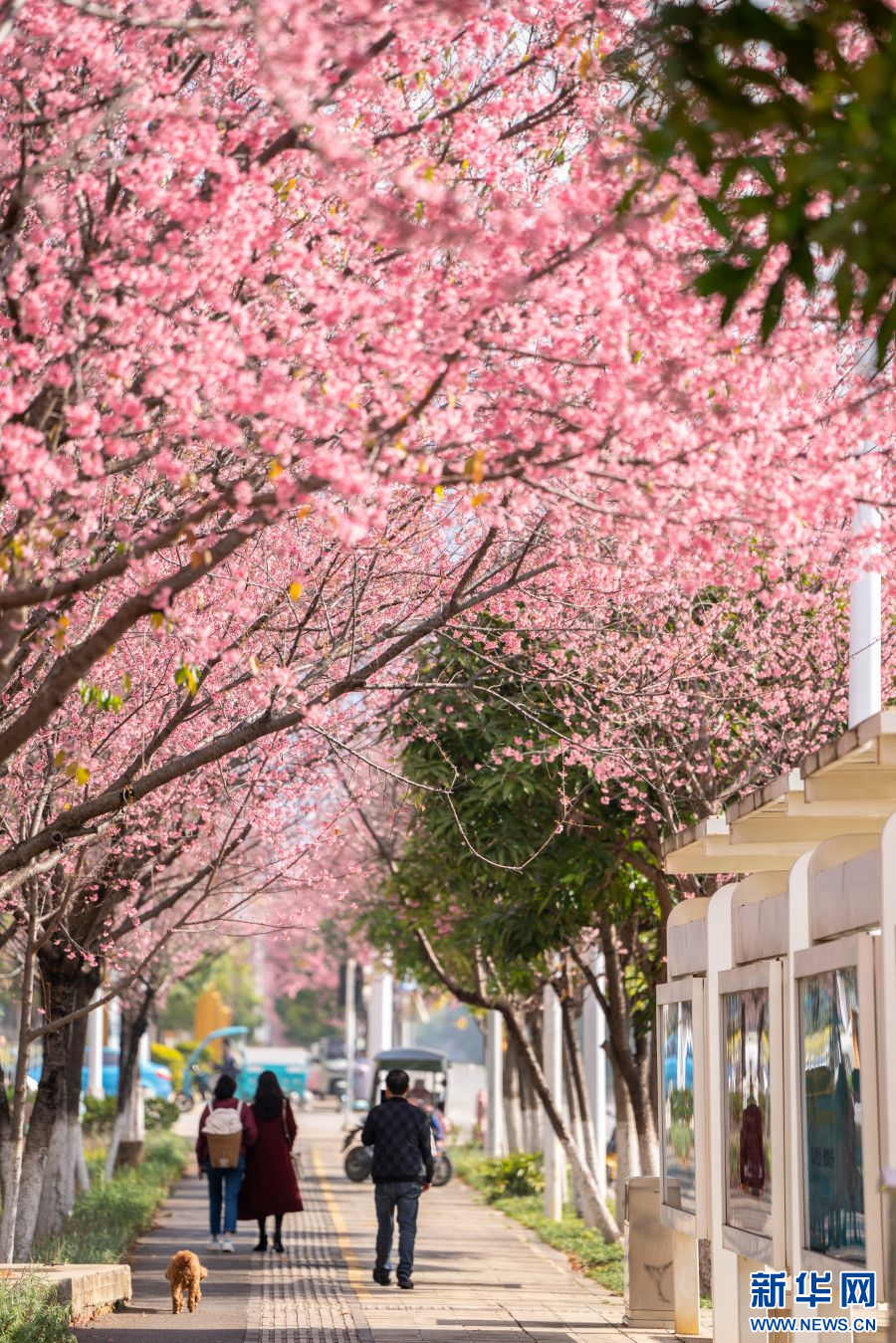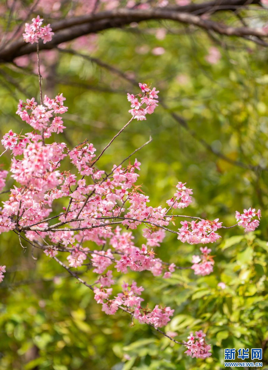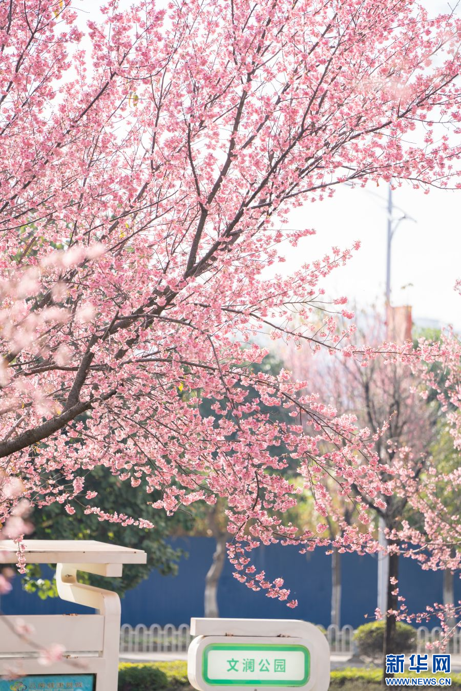 在云南省紅河哈尼族彝族自治州蒙自市,冬日暖陽下,櫻花盛開,與碧藍的天空交相輝映,美不勝收。(馬秋菊 李星 楊子傲 佘卓瑾)