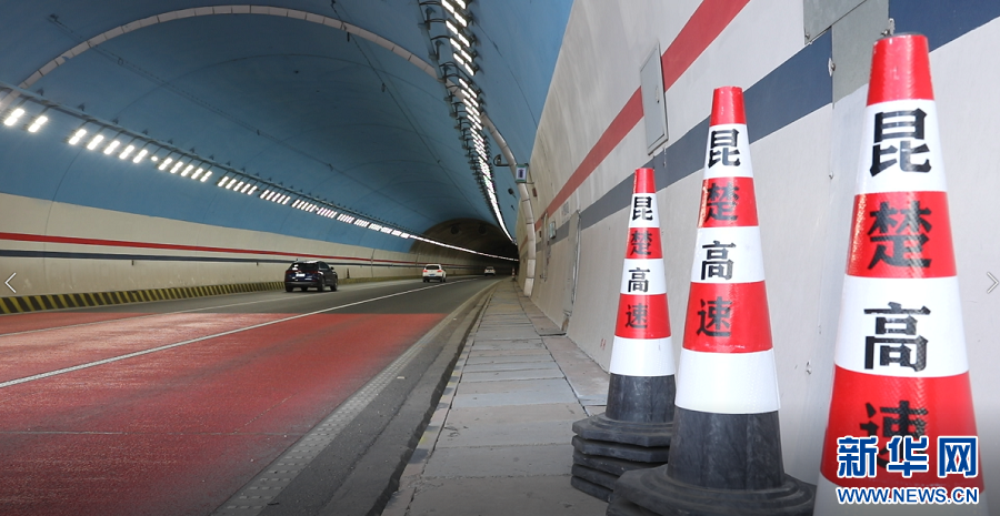 隧道內預留的錐桶(1月19日攝)。新華網發(楚雄州公安局交警支隊供圖)