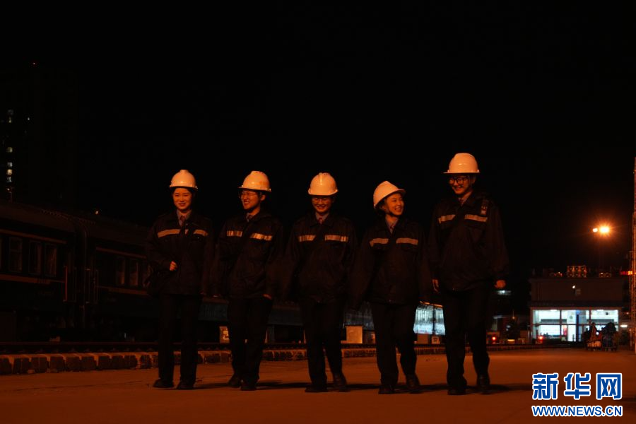 女孩們在檢查列車(1月17日攝)。新華網發(鄭益 攝)