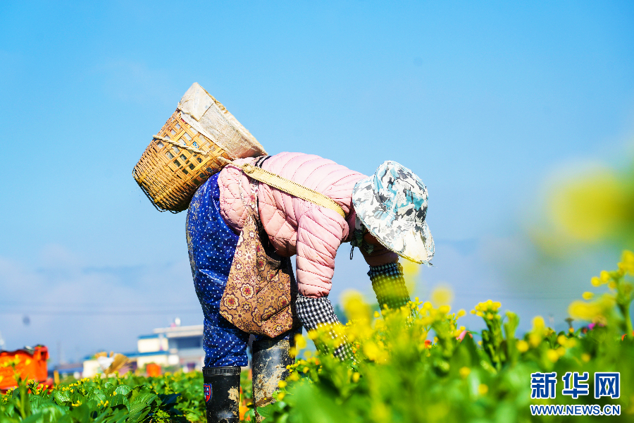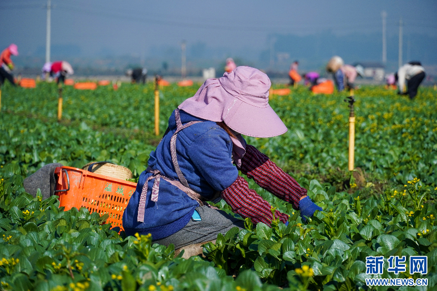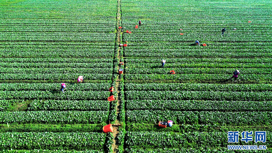 工人正在采收蔬菜(1月19日攝)。新華網發(尹興朋 攝)