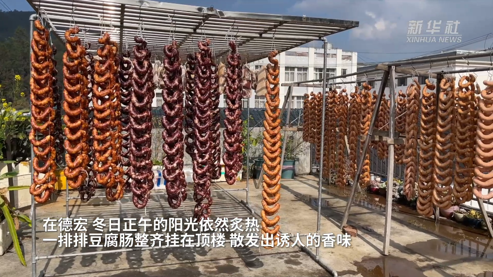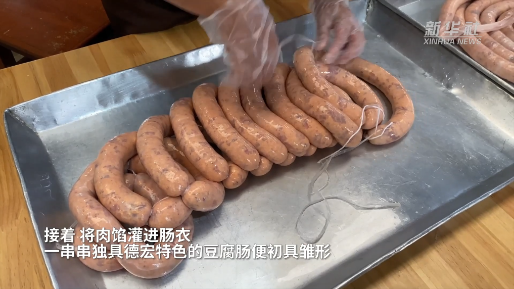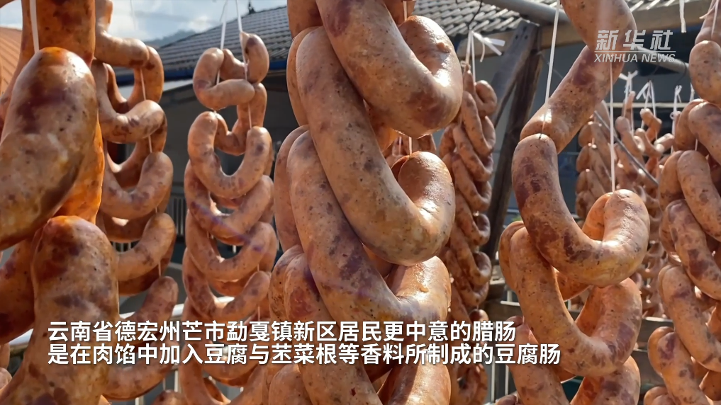 除常見的川味臘腸和廣味臘腸外,在云南省德宏州芒市勐戛鎮新區,當地居民更中意的臘腸是在肉餡中加入豆腐與苤菜根等香料所制成的豆腐腸。